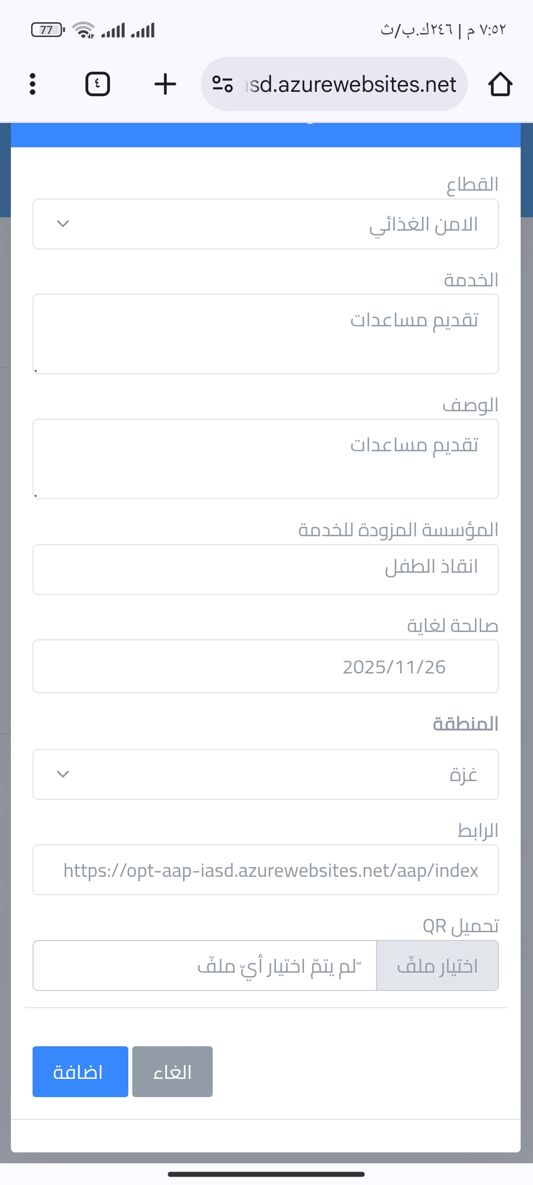 مساعدات غذائية أو نقدية مقدمة من برنامج الأغذية العالمي .أو تحديث بيانات